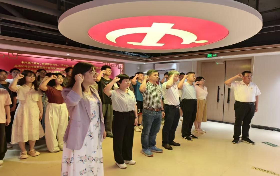 在庄重的“政治生日”仪式中,公司党委为员工党员赠送饱含组织殷切期望的“政治生日”贺卡。全体与会党员移步宣誓区,面对党旗,高举右拳,在杨董事长带领下重温入党誓词。